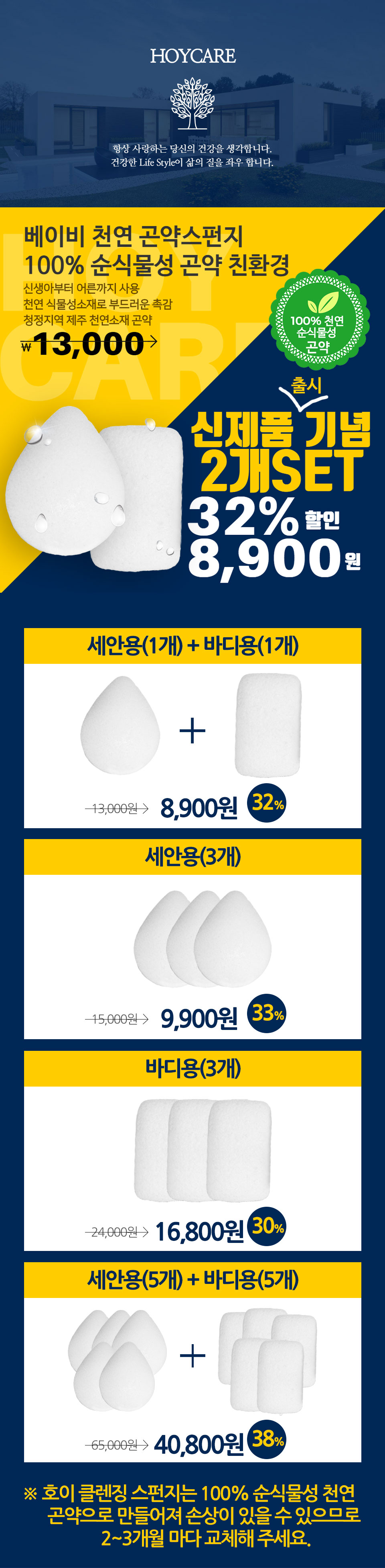 호이케어 아기 곤약스펀지 (천연100%곤약 스펀지) 3개