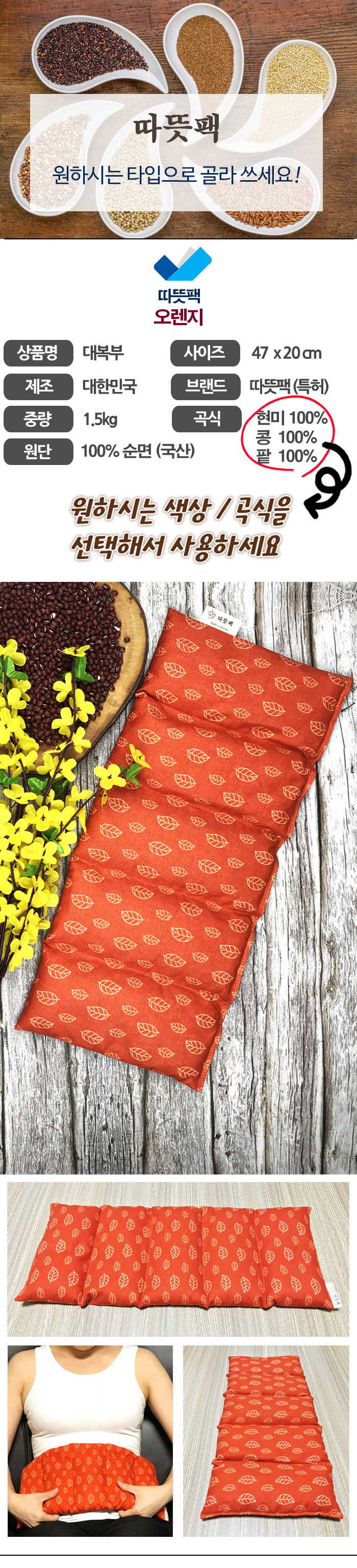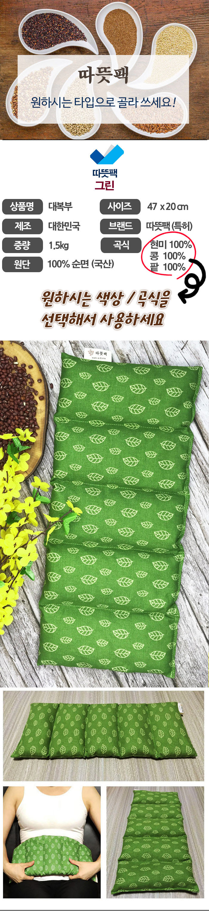 100% 천연 현미 100% 천연 팥, 100% 천연 콩으로만 제작합니다!