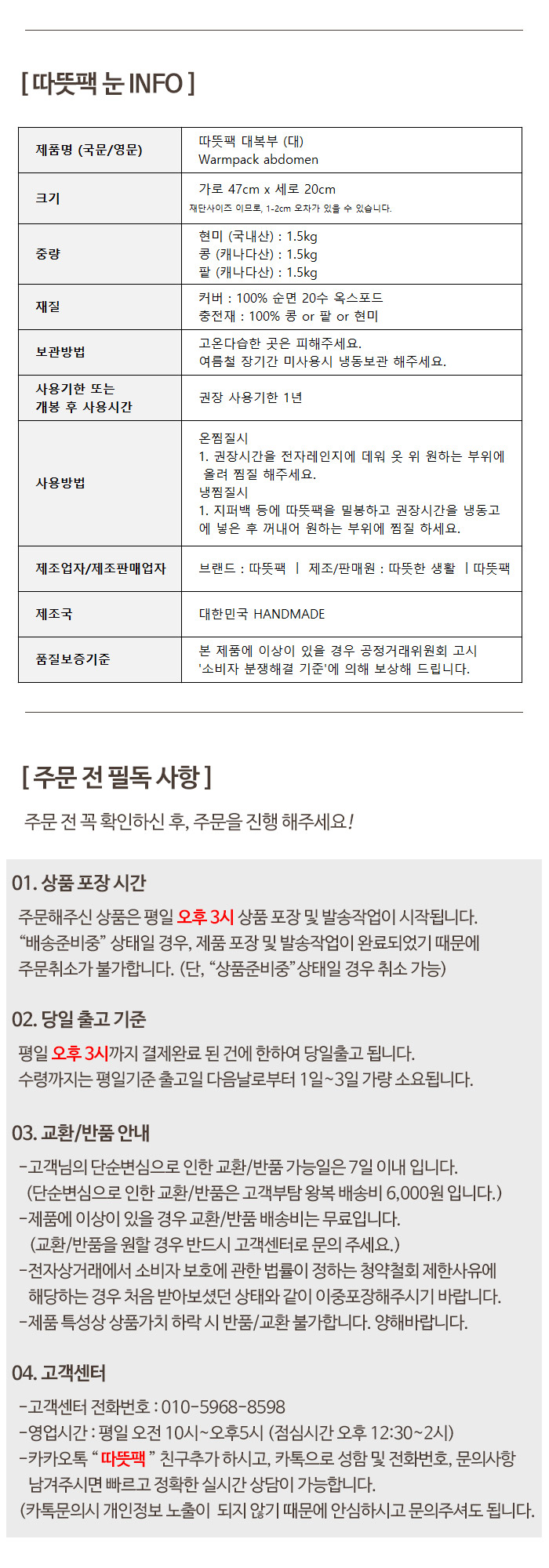 따뜻팩 대한민국 제작 100% 천연 찜질팩 - 대복부SALEBESTMDHOT오늘출발