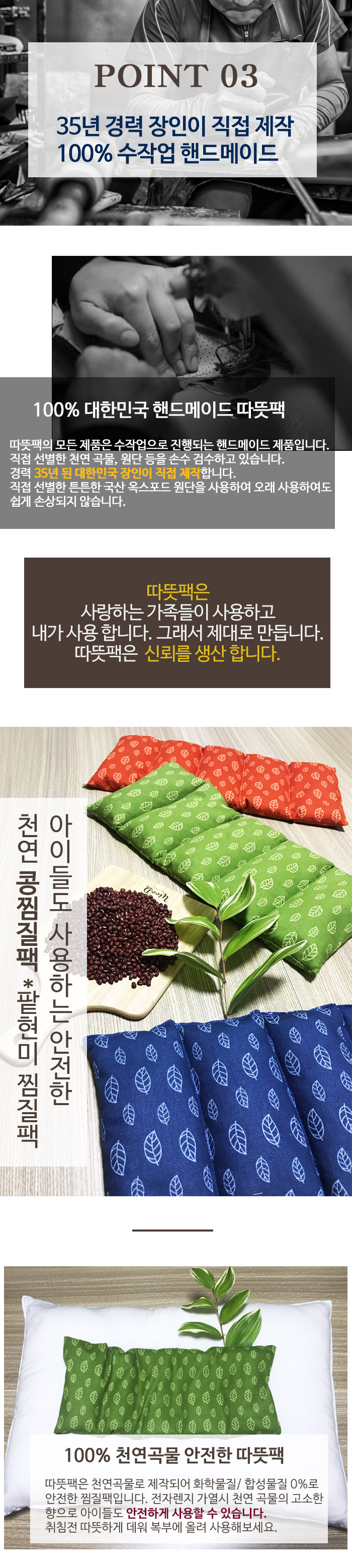 자랑스러운 대한민국에서 제작된 믿을 수 있는 대한민국 브랜드 NO.1 따뜻팩 입니다.